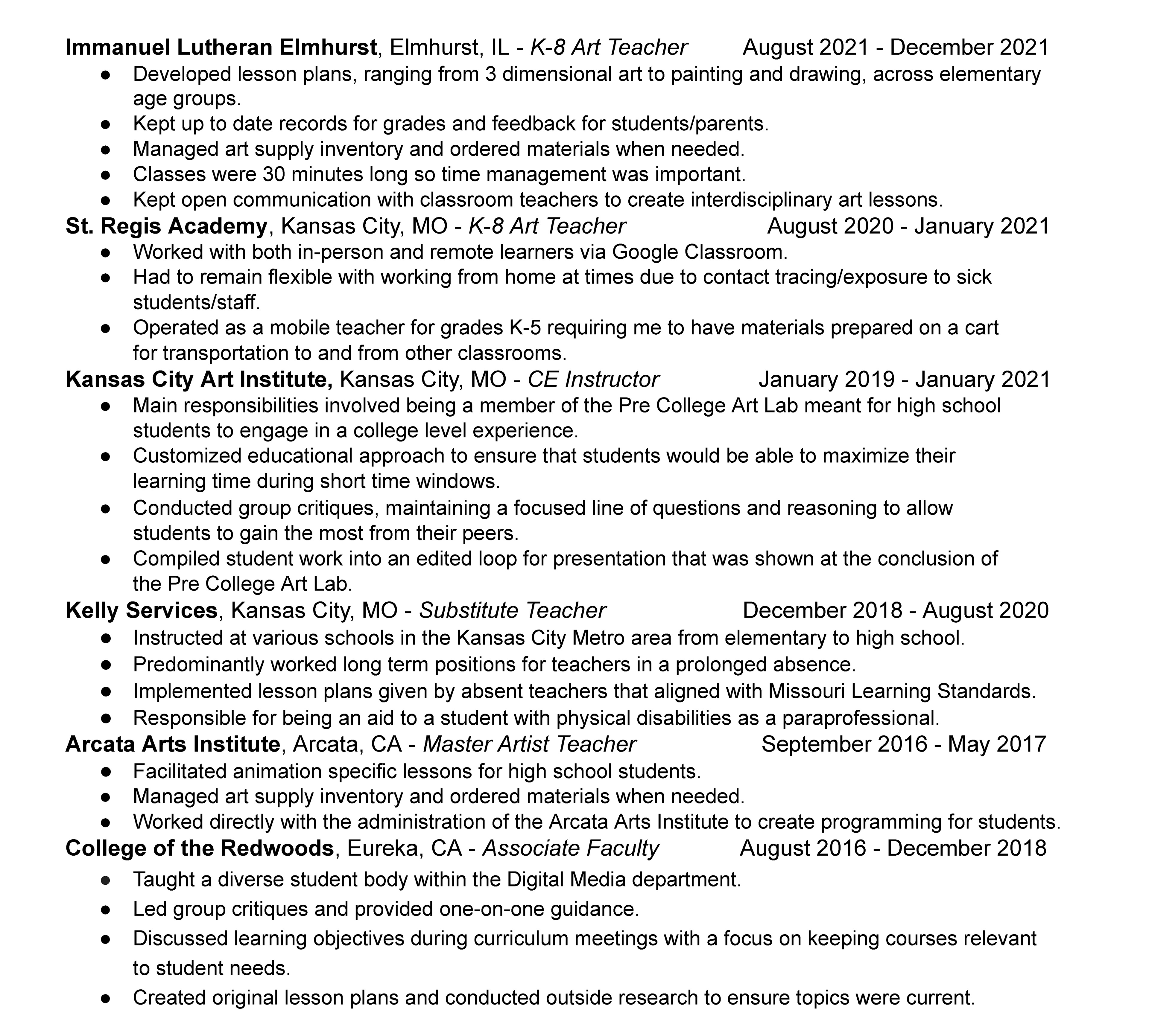 What makes a good art teacher is someone who creates an enjoyable environment and experience in the art room. For my approach to lessons for students, it's important to consider not just content but also context in relation to students' lived experiences inside and outside of the classroom. This leads me to employ personal narrative and self-identity as themes for art making. Empowering students to take charge of their own stories through art making can have a profound impact on self confidence and self worth.